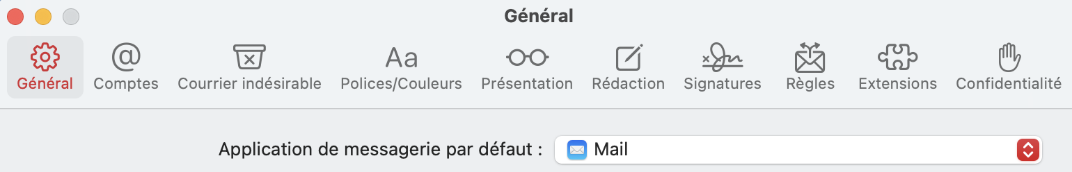"Mail" "Réglages" "Général" "Application de messagerie par défaut "Mail"
