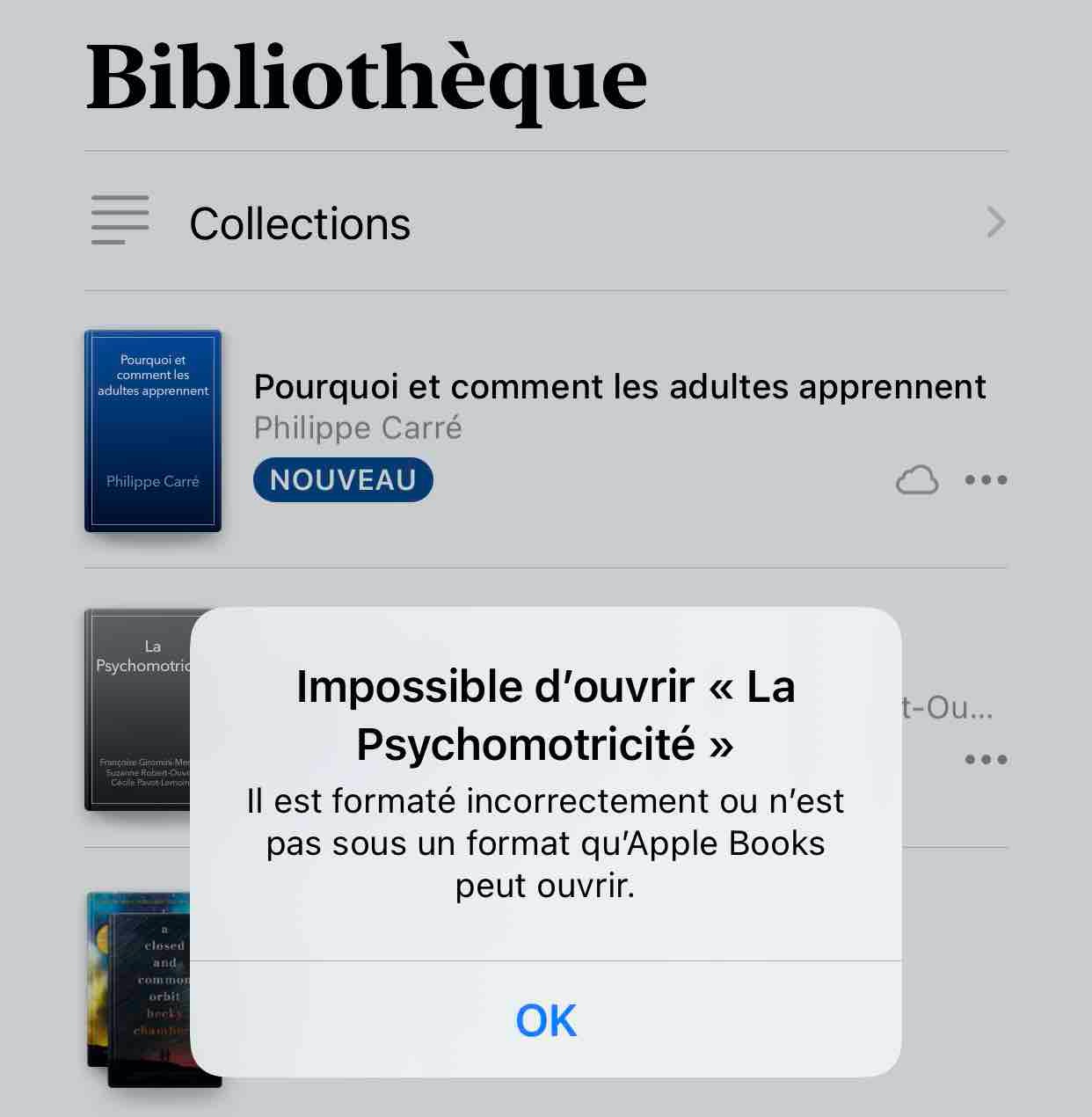 Enfin, je te conseille de regarder directement sur le site de l'éditeur auprès duquel tu as acheté ce livre s'il est compatible avec l'app Livres d'iOS.