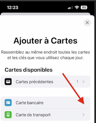 Puis sur Carte bancaire et scanner la nouvelle carte