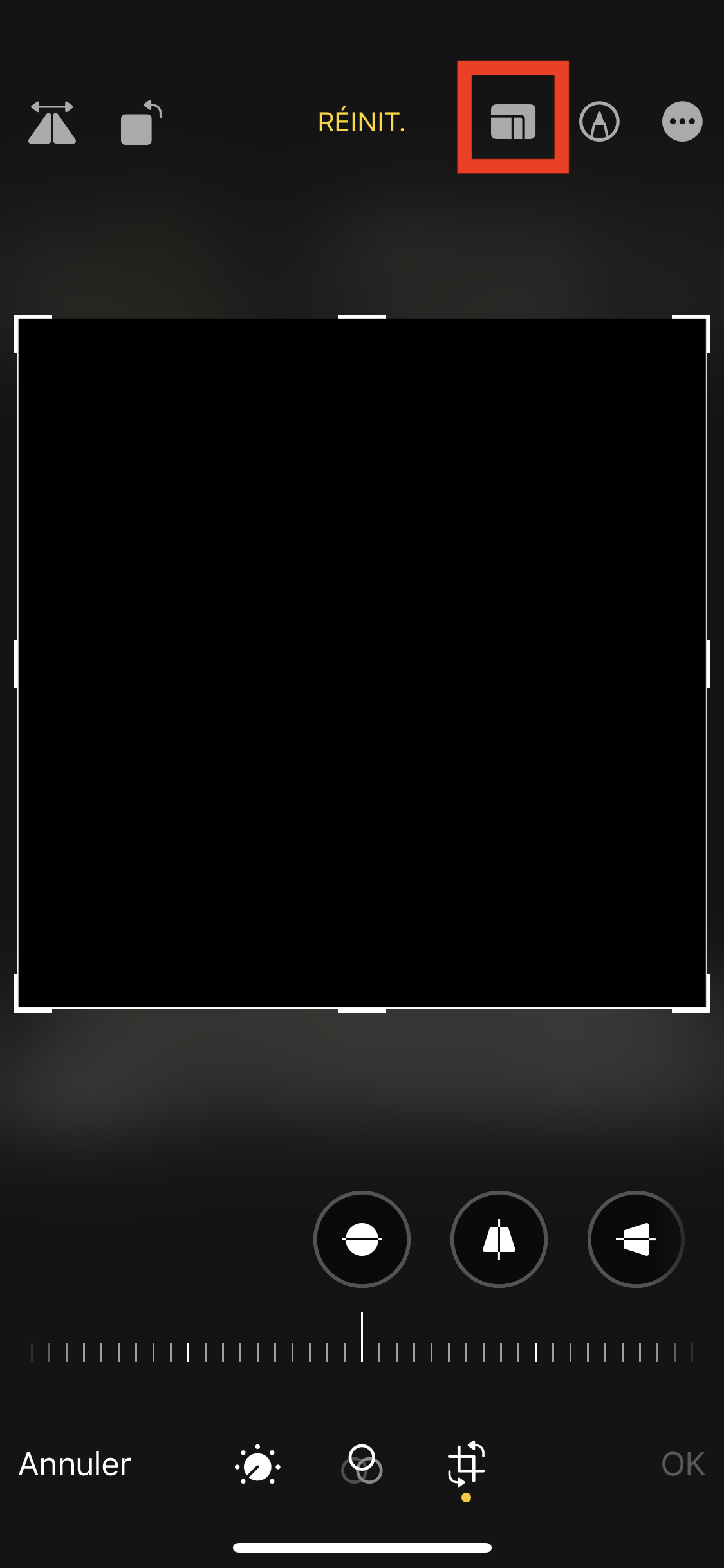 Tu devrais pouvoir modifier le format de ta photo en allant dans l'app Photos, en cliquant sur ta photo, puis en cliquant sur Modifier. Ensuite, touche le bouton  le bouton Recadrer, puis le bouton  le bouton Proportions.