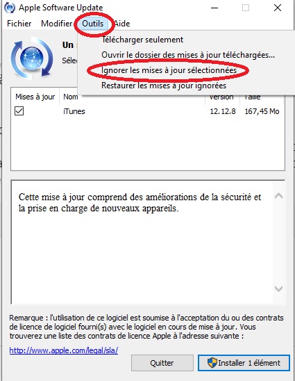 Si votre ordinateur Windows 10 / 11 n'est pas à jour il est possible que la mise à jour 12.12.8.2 de iTunes ne soit pas proposée.