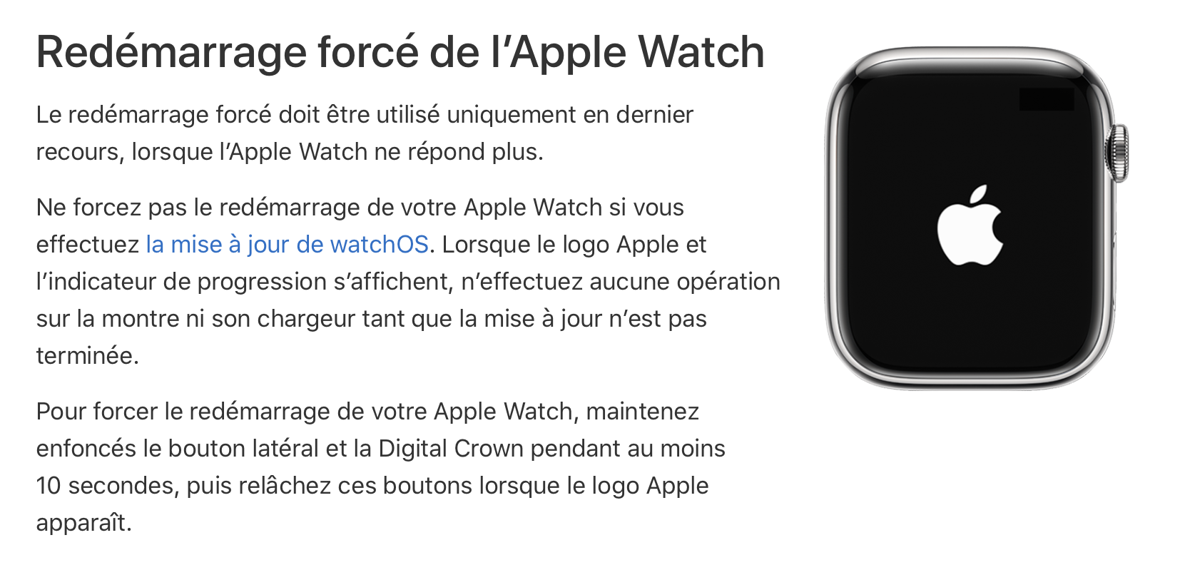 (Source : Redémarrer votre Apple Watch - Assistance Apple (FR))