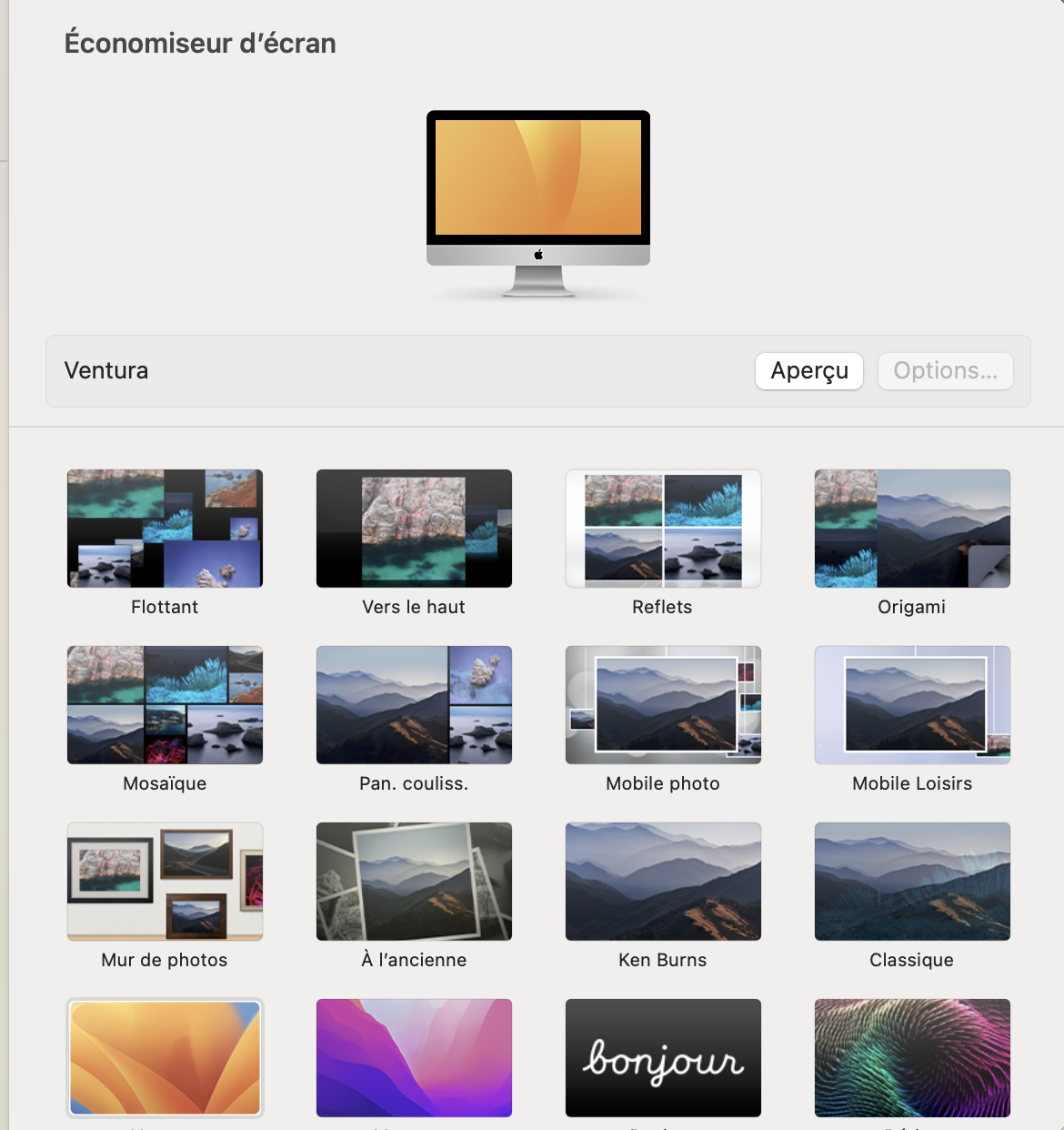 quand dans réglage système, je suis sur économiseur d'écran je n'ai pas accès à "options" qui est en grisé, pourquoi ?je vous ai fait une capture d'écran. Merci d'avance pour vos réponses cordialement