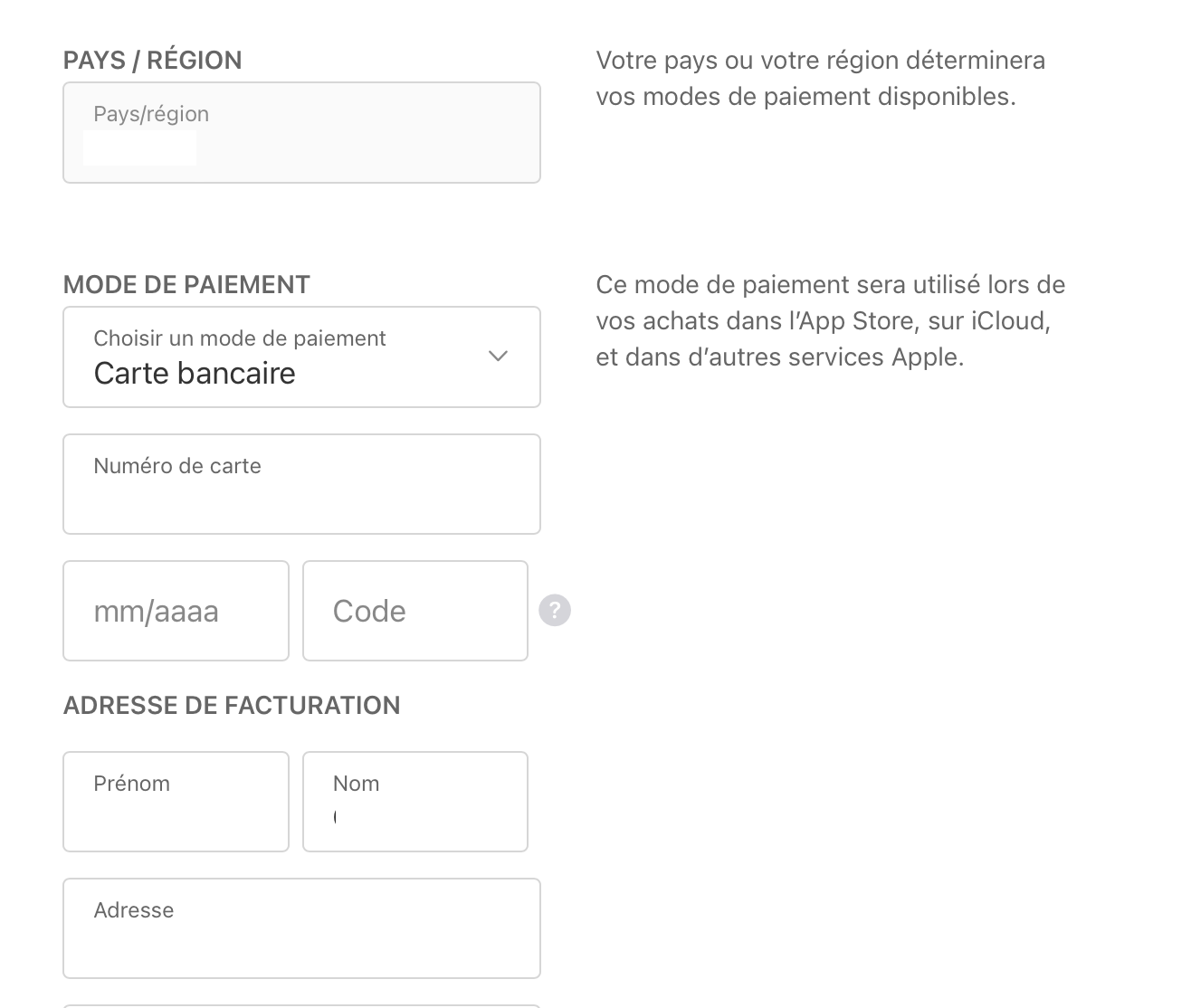 Mise à jour données facturation identifiant Apple