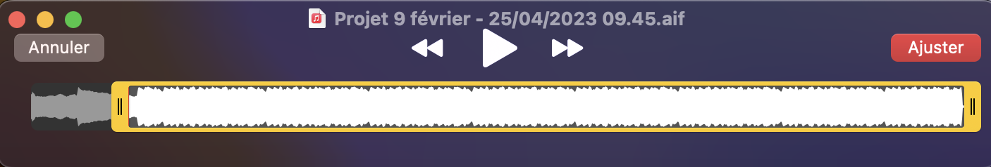 A ce stade, j'ai besoin de réduire la longueur du morceau, surtout de supprimer le début vierge de mon projet (45 secondes).