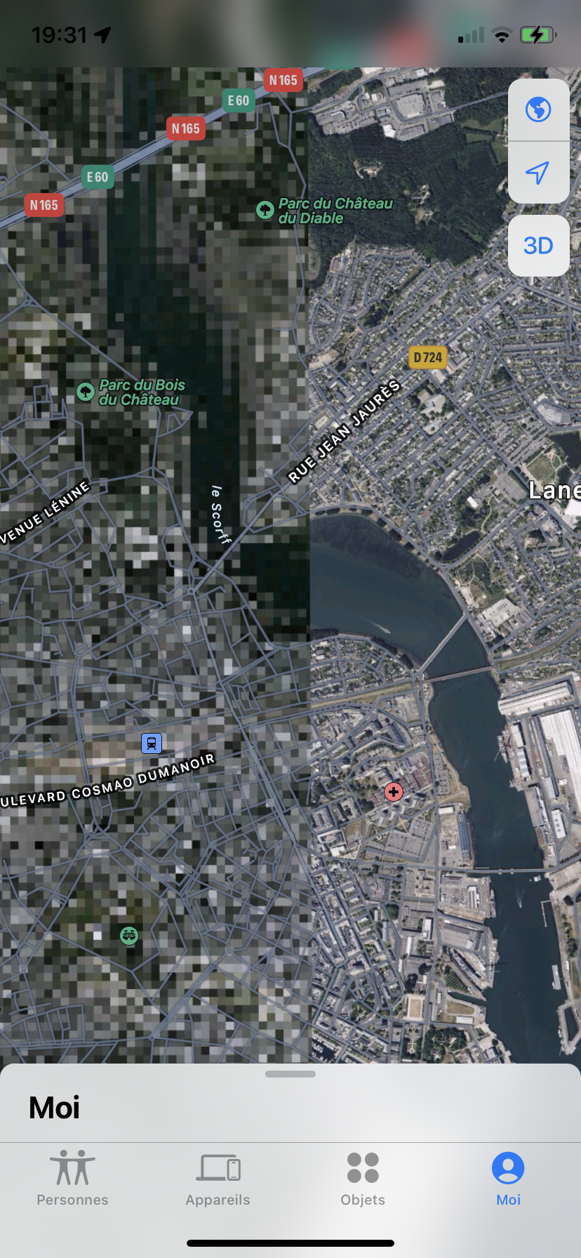 Bonjour, depuis environ 2 ou 3 mois la carte satellite de l'application LOCALISER et PLANS est floue. Cela ne concerne apriori que certaines villes, pour mon cas Lorient Ploemeur dans le morbihan. Avez vous une solution pour résoudre ce problème. Merci