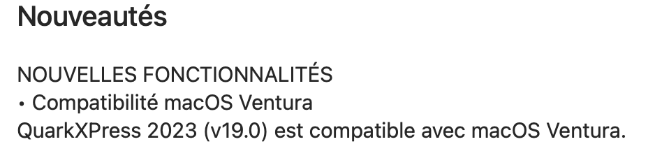 Quarkxpress pro 2018 ne fonctionne plus avec Mac OS Ventura. Quelqu'un a-t-il une solution?