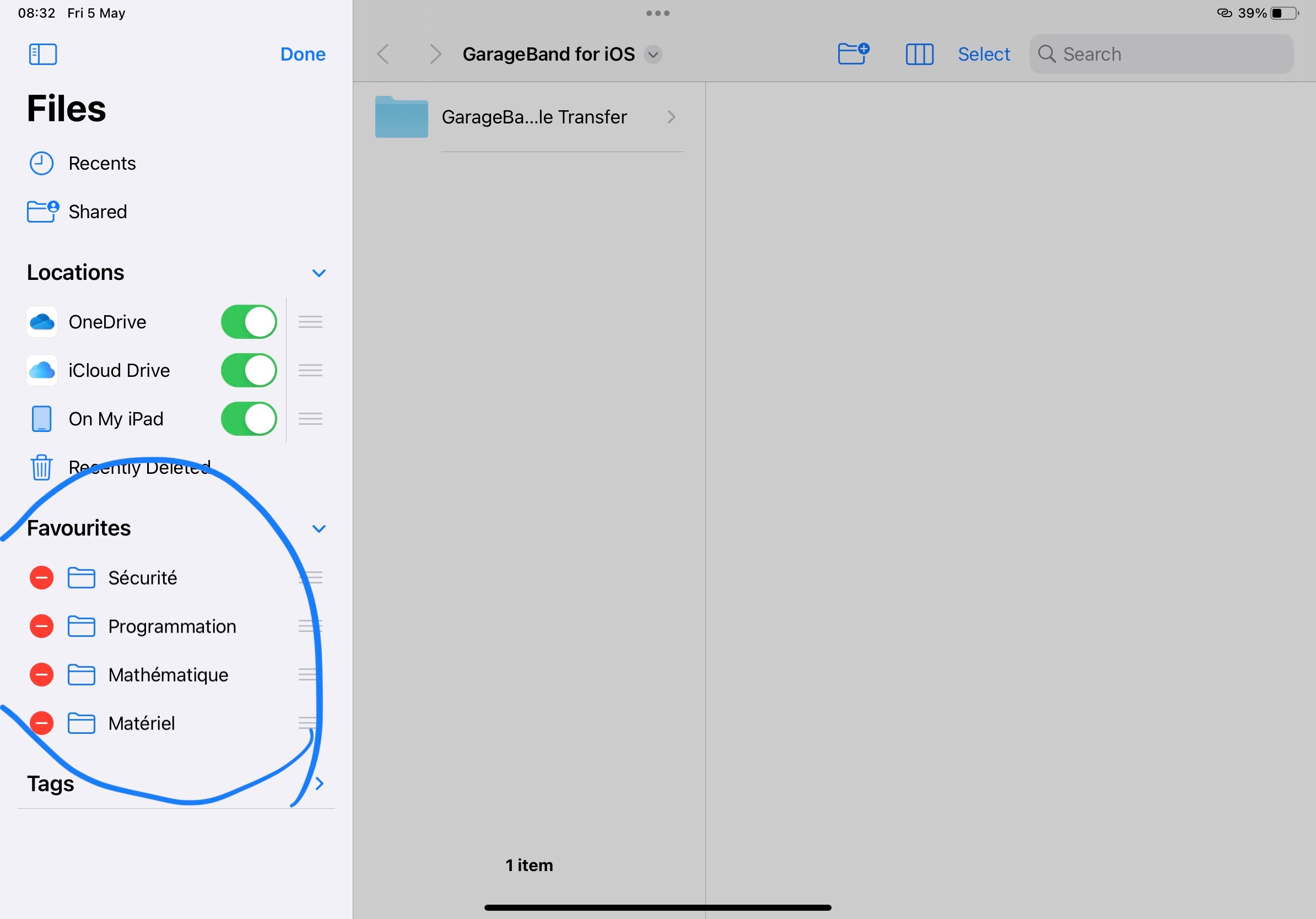 Sur mon ipad, dans mes favoris du fichier (App), comment supprimer un fichier qui n'existe pas ?