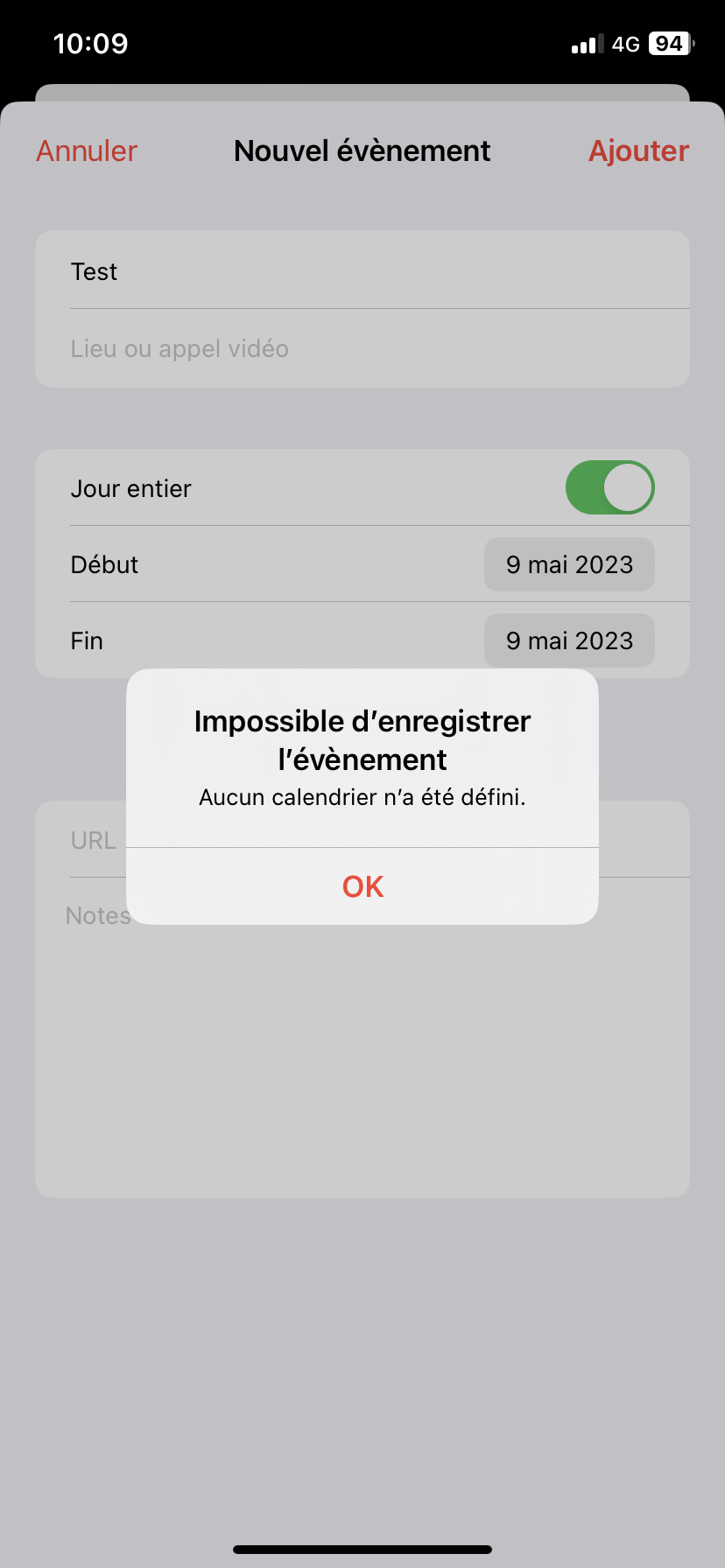 Merci par avance pour votre aide car c’est très handicapant au quotidien, ne pouvant me créer aucun événement et rappel sur mon calendrier