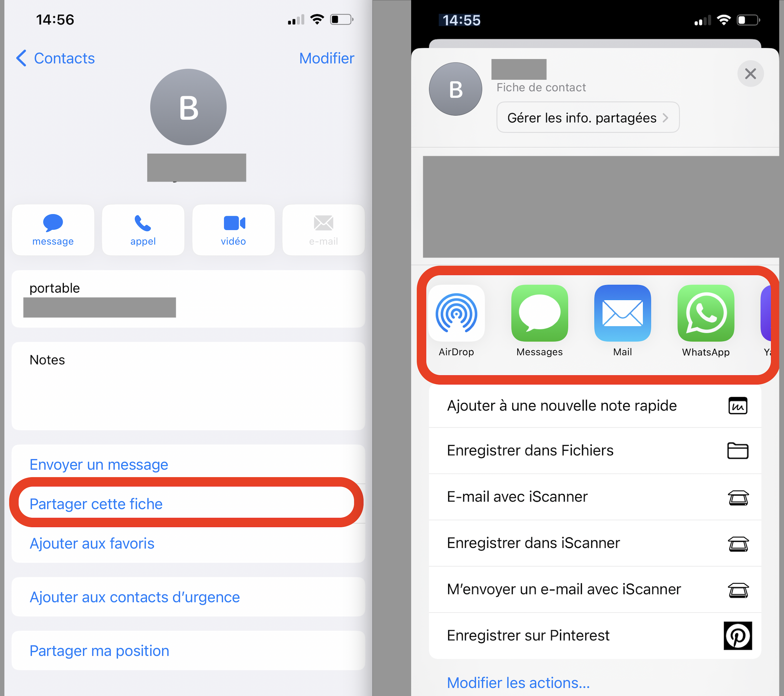Tu auras plusieurs méthodes pour transférer cette fiche contact, mais je te suggère d'utiliser AirDrop puisque tu recherches une méthode avec Bluetooth.