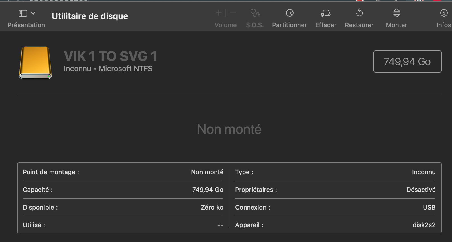 Si vous utilisez ce disque à la fois sur macOS et sur Windows, sauvegardez toutes vos données importantes présentes sur le disque et reformatez le disque ExFAT sur macOS. Cliquez ici pour en savoir plus sur le formatage d’un disque ExFAT.