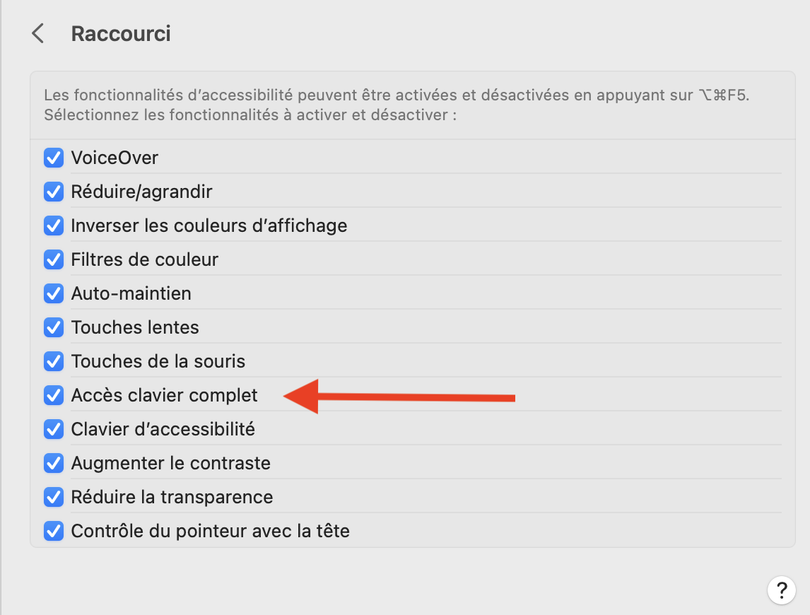 L'option dont il est question se trouve dans Réglages Système > Accessibilité > Général/Raccourci.