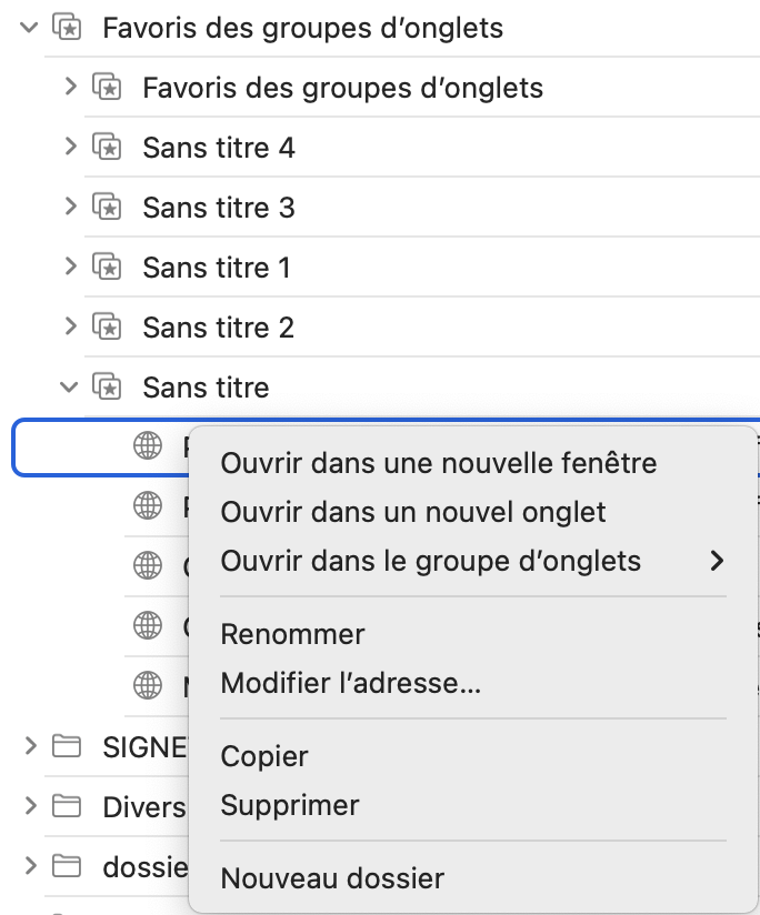 Je n'arrive pas à renommer ou supprimer un ou des groupes d'onglets dans Safari.