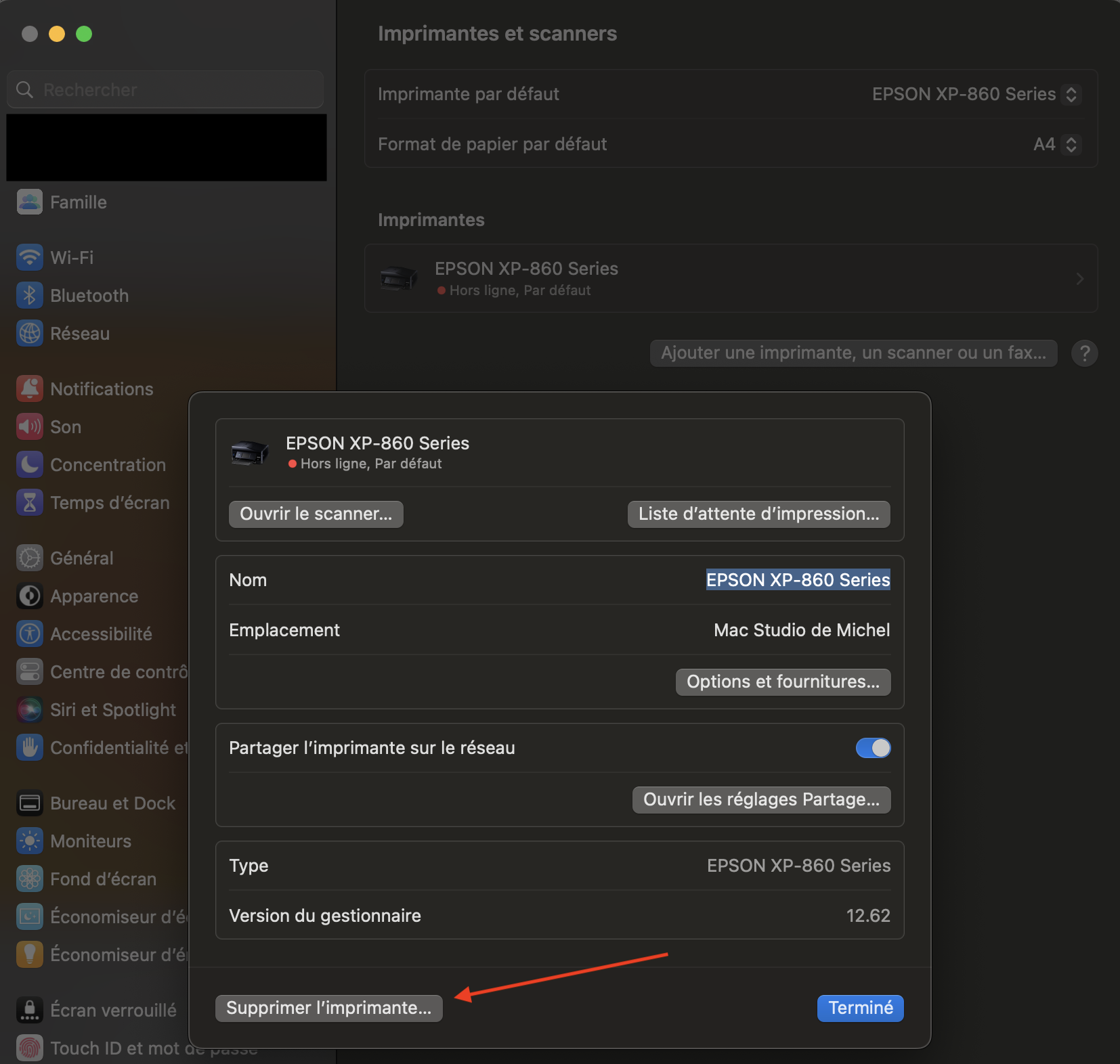 Ensuite tu vas supprimer l'imprimante ou les imprimantes qui apparaissent comme ci-dessous :