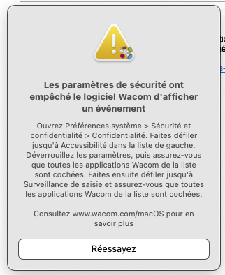 Problème tablette Wacom avec mon Mac Mini Apple M2 Pro 2003