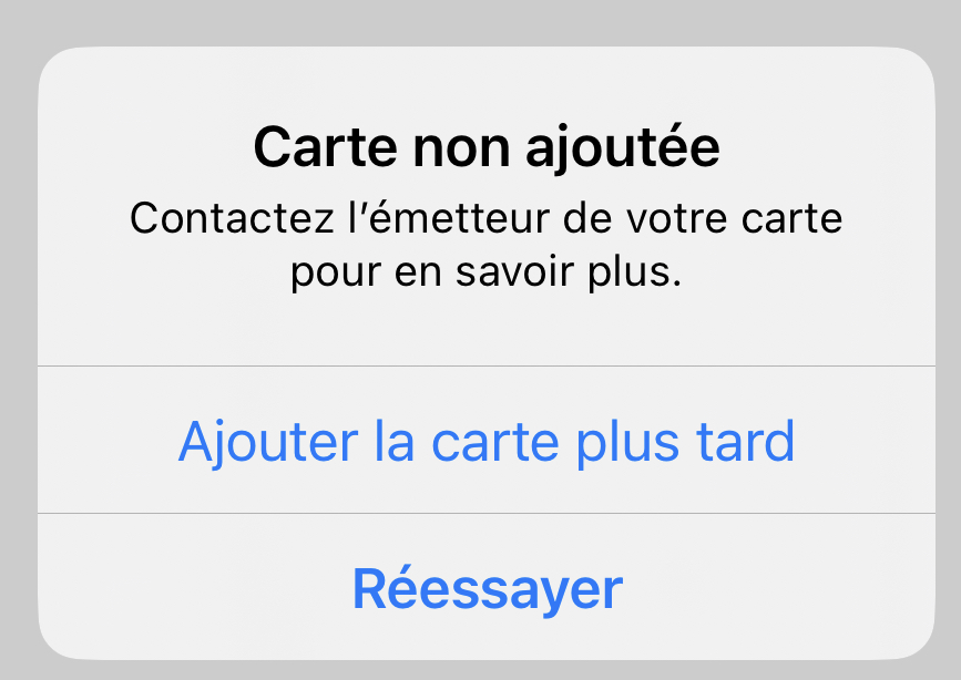 J'essaye de déclarer ma carte CB Fortunéo dans ApplePay et j'obtiens une erreur
