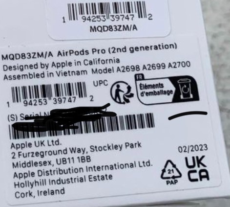 Je ne comprends pourquoi mes AirPods Pro 2 sont d un modèle identifiés A2618, pourquoi sur la boite j ai des références différentes ?
