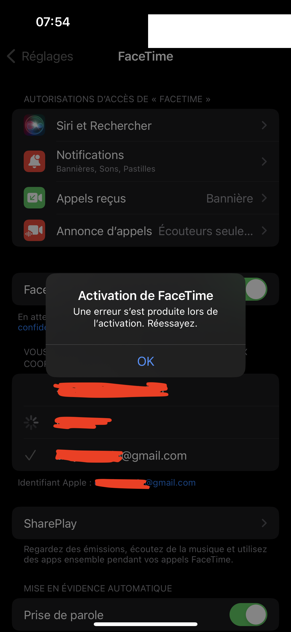 PS: Malgré tout, je reçois et émets les appels FaceTime Vidéo