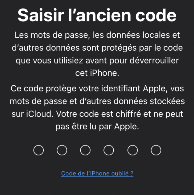 Bjr j ai oublie mon mot de pass de l autre iphone et j ai maintenant iphone 14