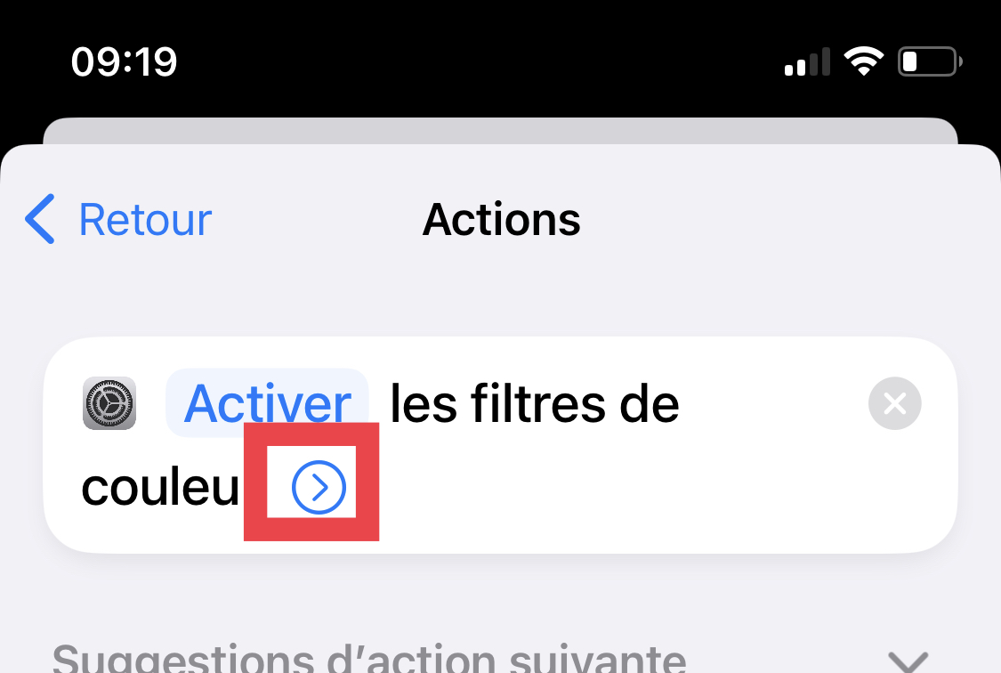 La dernière chose à faire et de régler le filtre couleur que vous voulez utiliser : nuances de gris dans votre cas. Pour cela accédez à Réglages > Accessibilité > Affichage et taille du texte > Filtres de couleur, activez “Filtres de couleur” et choisissez “Nuances de gris”. Ceci fait, dans le même écran, désactivez “Filtres de couleur”. Cette procédure un peu étrange est seulement pour définir le type de filtre couleur que vous utiliserez dans l’automatisation.