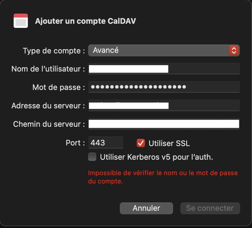 Impossible de créer un compte calendrier CalDAV sur Mac