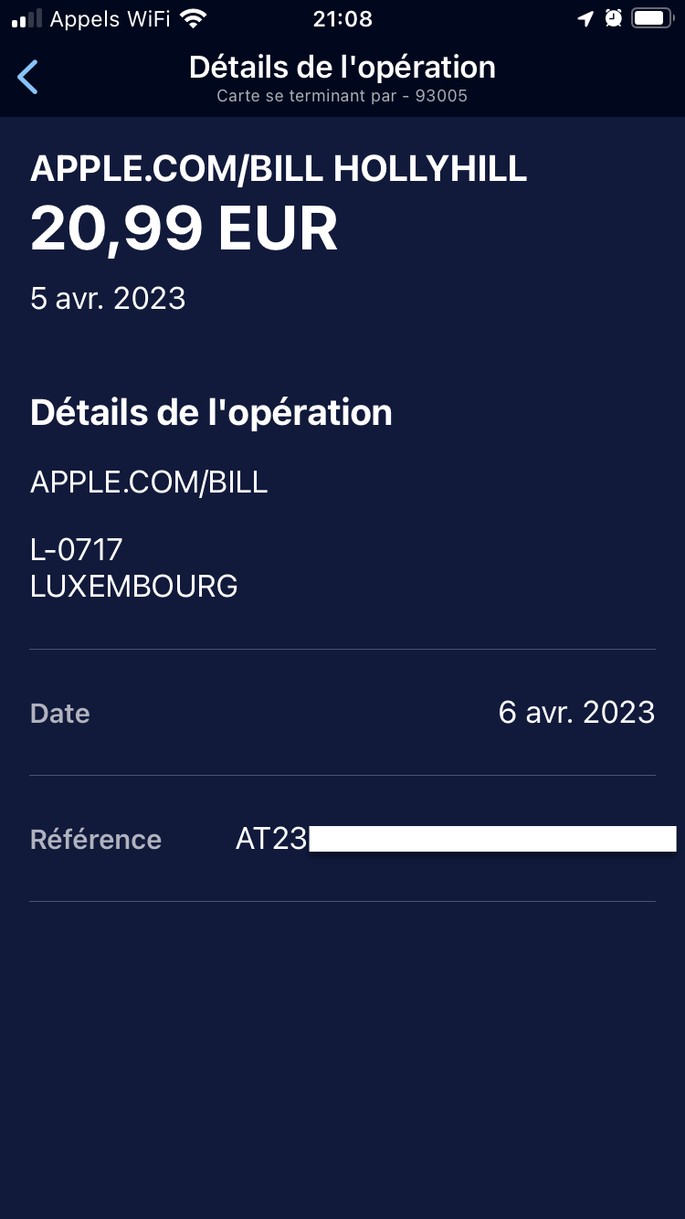 J’ai un prélèvement injustifié de Apple.com/bill hollyhill : j’ai lu les postes sur ce type de prélèvements et j’ai suivi la procédure : pas d’achat ou d’abonnement payant même dans le cercle familial. Comment puis je demander le remboursement car lorsque je souhaite faire la demande on me dit « aucun achat éligible » et « aucun abonnement éligible » donc pas possible d’entamer une demande …