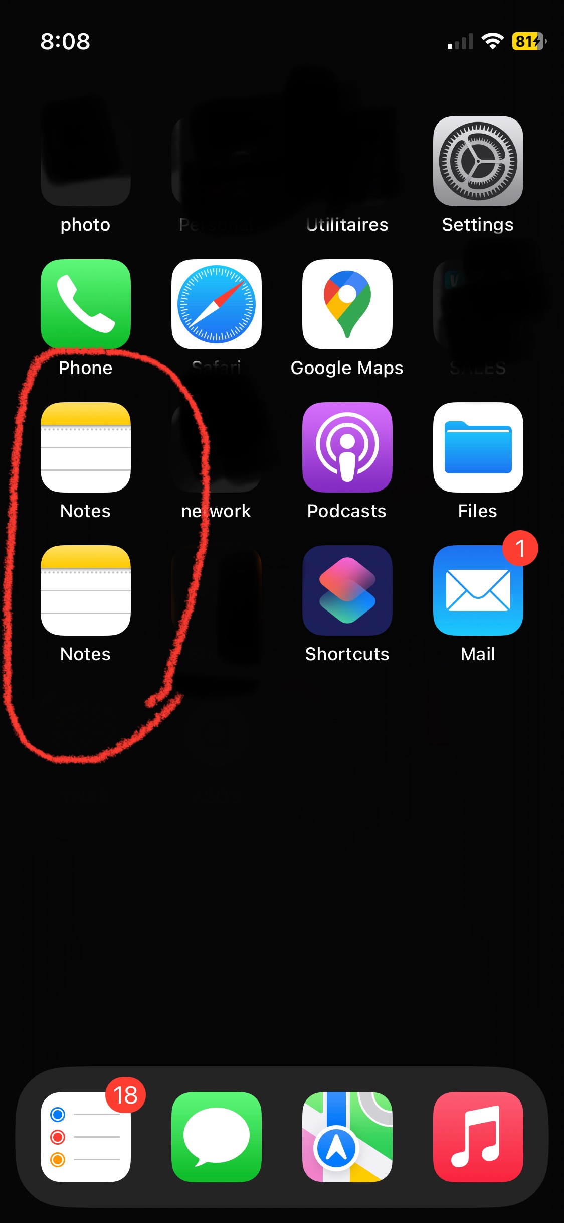 J'ai 2 fois la même application sur mon iPhone, il s'agit de l'application Notes.