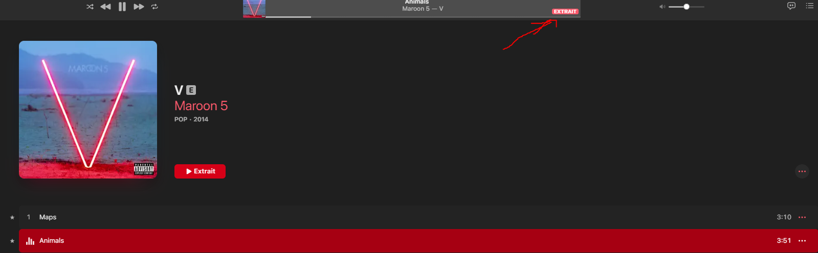 et c'est pareil sur toutes les musiques, sauf apparemment celles ce trouvant dans des playlist que j'ai enregistrer (quand je les sélectionne depuis la playlist c'est ok si je sélectionne la même musique sur apple musique c'est pas ok) le 1er screen proviens d'une de mes playlist et le 2ème proviens de l'album sur apple musique
