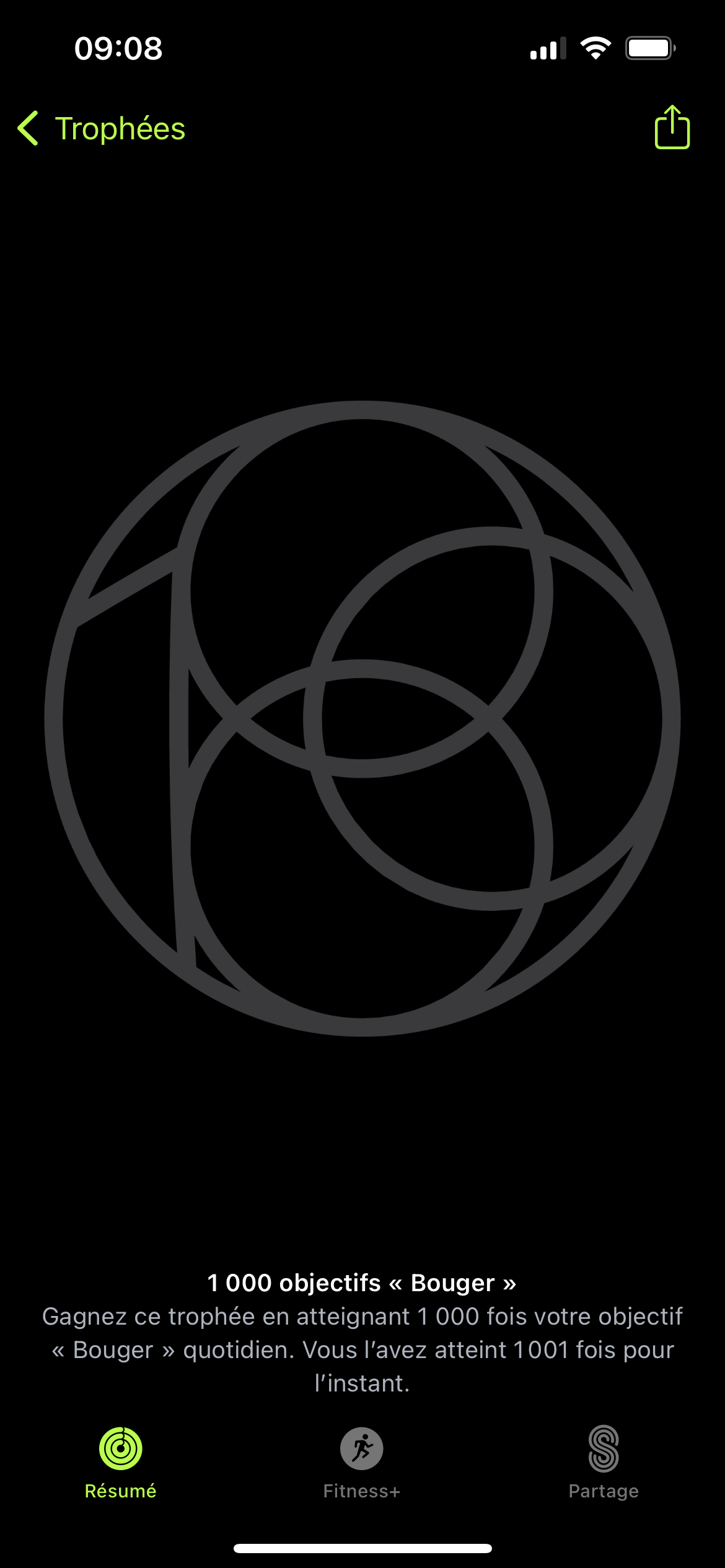 C'est plutôt une bonne nouvelle que tu vois quand même le trophée sur ton Apple Watch. Ce n'est peut-être qu'un petit souci de synchronisation 🤔.