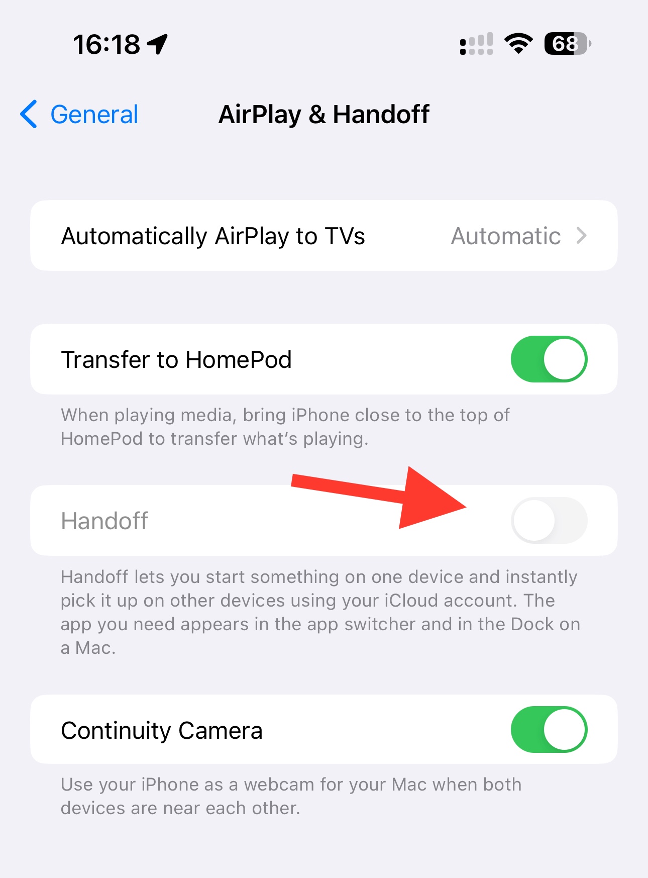 Je ne peux pas activé la fonction Handoff sur mon iphone.