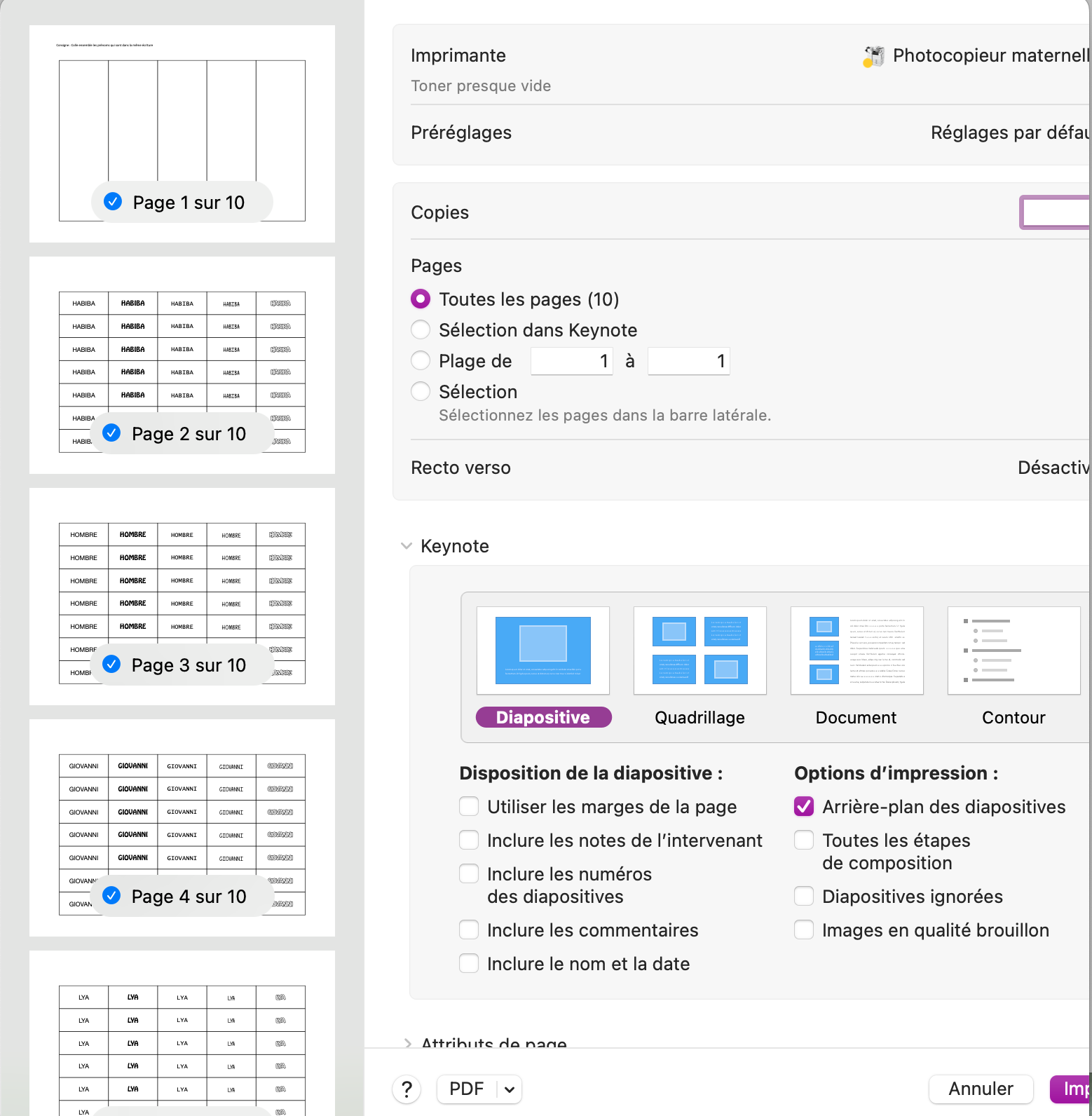 Depuis quelques temps lorsque je veux imprimer à partir de keynote, la fenêtre d'impression est coupée sur la partie droite. Impossible de choisir le nombre de copies, ni l'option recto/verso. Que faire ?