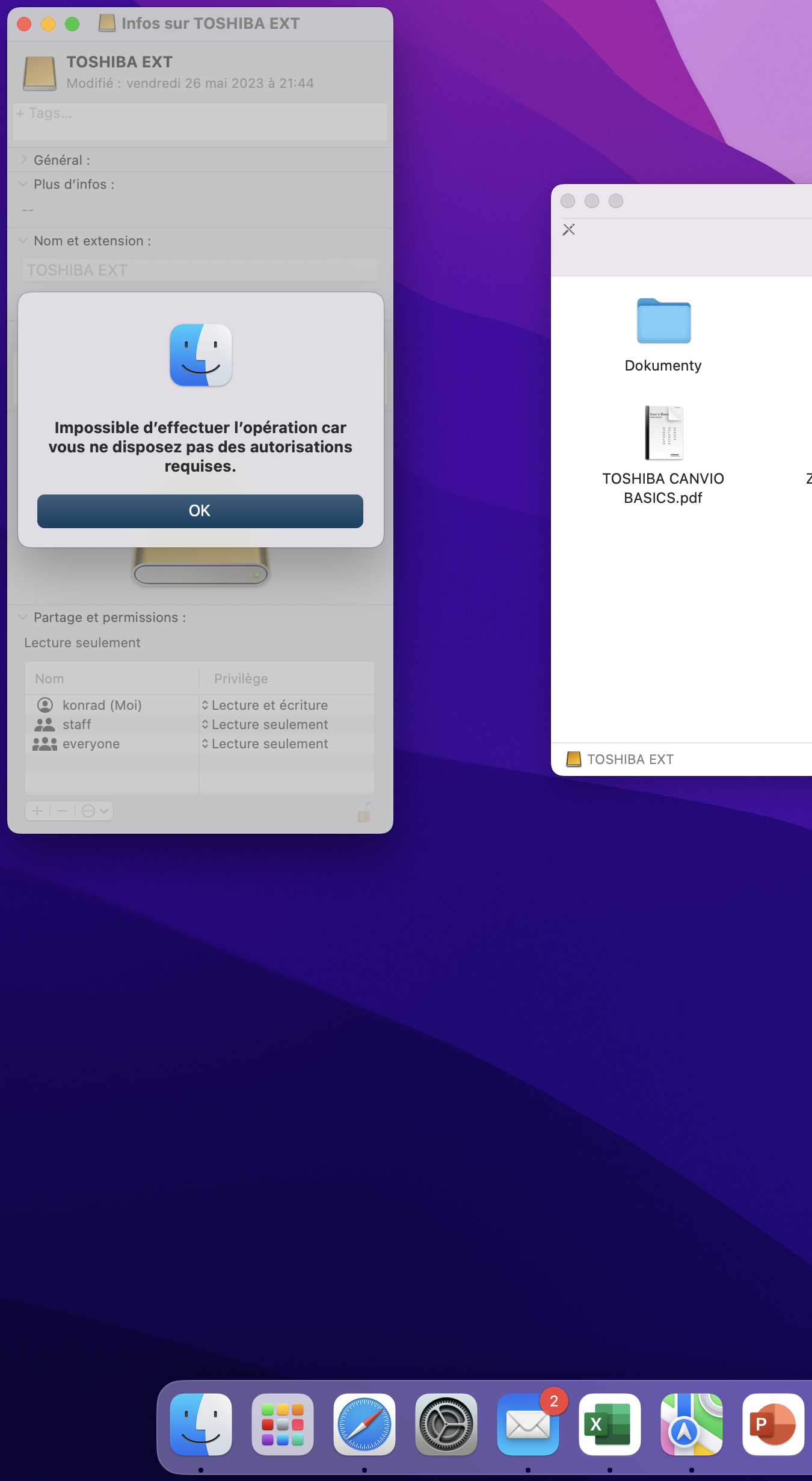 Bonjour je n'arrive pas à ajouter de document sur le disque externe mais les réglages ont l'air correct mais pas possible d'ajouter des choses dessus, par contre je peut copier sur le des documents Mac