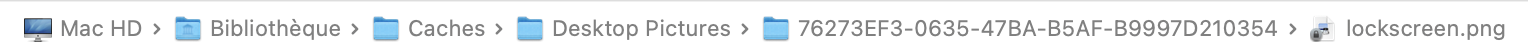 Si ce que vous cherchez à faire est modifier votre écran de connexion au Mac, l'écran ou vous saisissez votre mot de passe de connexion, il faut aller dans le dossier Nom_du_Disque_dur / Bibliothèque / Caches / Desktop pictures ...