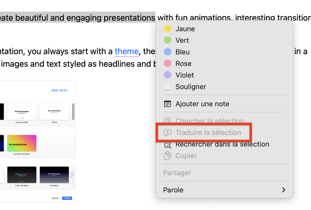 Je n'arrive pas à accéder à la traduction de certains mots ou phrases dans l'application Livres. Je vois l'option mais impossible de m'en servir car elle est grisée... Comment faire ?