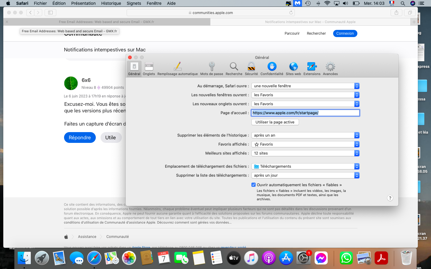 De plus, si vous voyez les notifications, j'ignore totalement de quel site elles me viennent. Lisez-les attentivement, ce sont toujours les mêmes. Je ne vois pas de QUI elles proviennent. Merci de votre aide. C'est très agaçant et envahissant. Je crois que c'est Mac Keeper qui envoie ça. Quand j'ai cliqué sur le post de FB Mac Keeper s'est ouvert, j'ai vite tout fermé mais c'était trop tard. Je ne sais que faire.