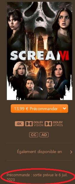 Bonjour, pourriez vous me dire quand le film scream VI sera disponible sur iTunes en français ?