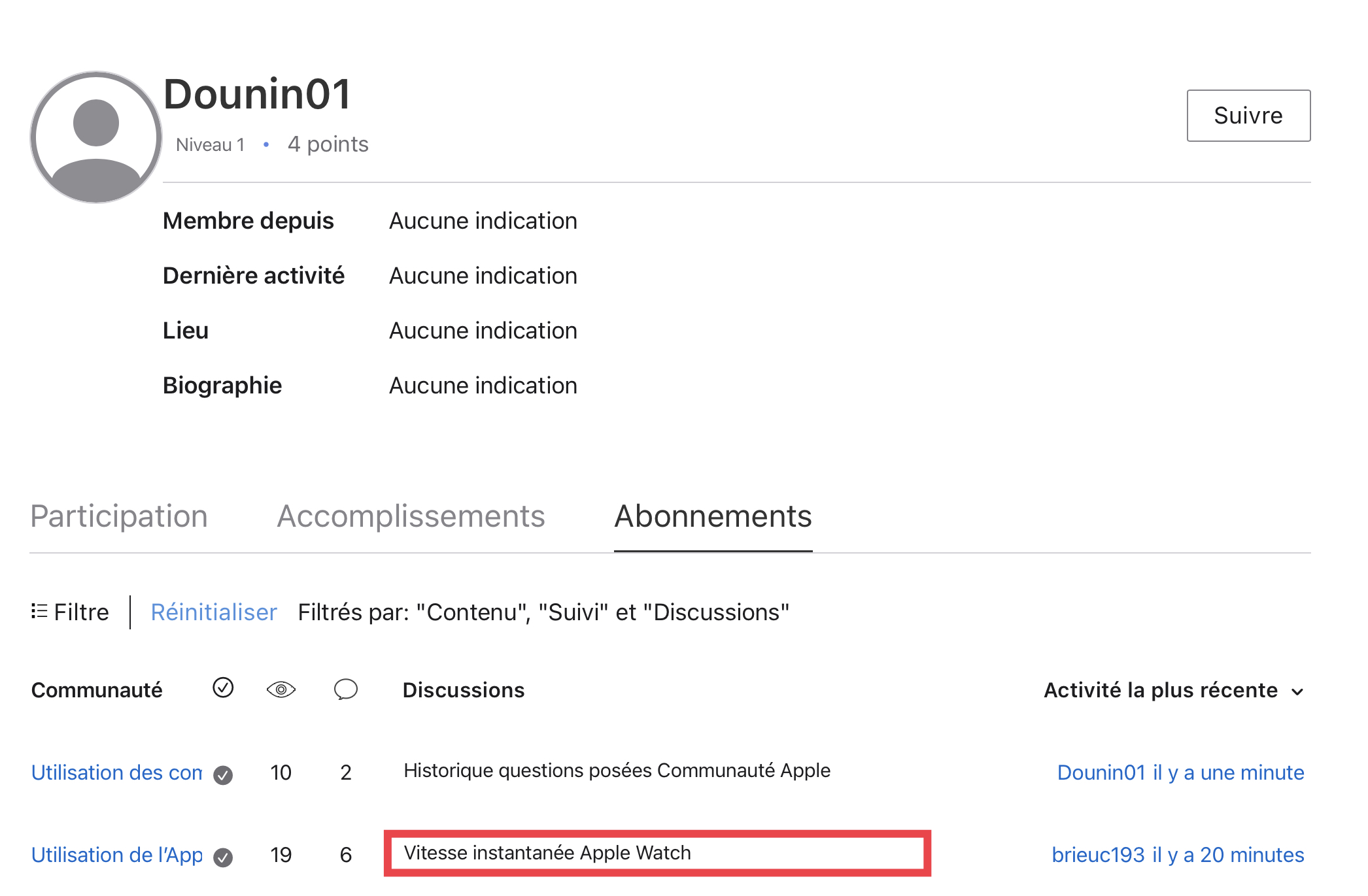 Historique questions posées Communauté Apple