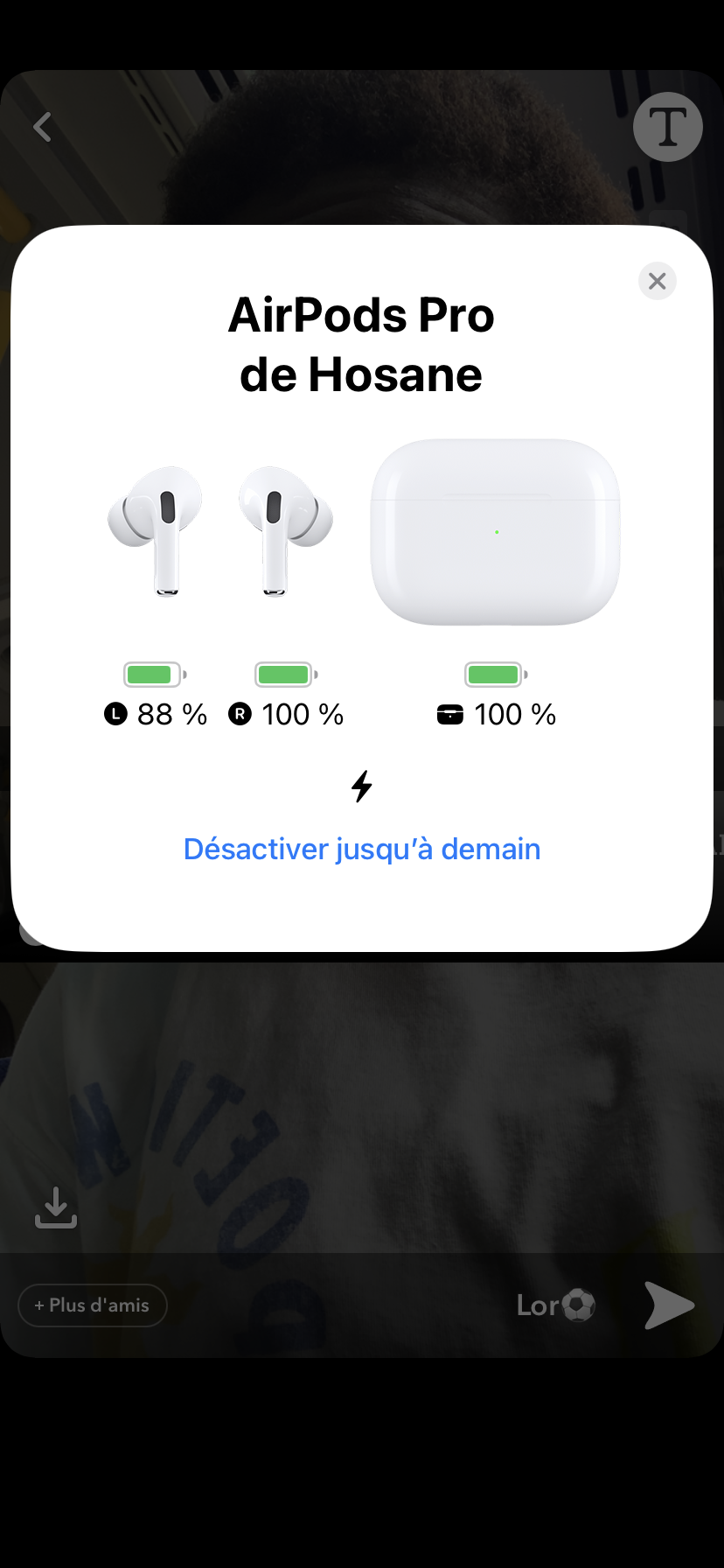 Bonjour Titicool, non je parle de la notification qui s’affiche à l’écran qui me montre à combien de porcentage mes air pods et mon boîtier sont.