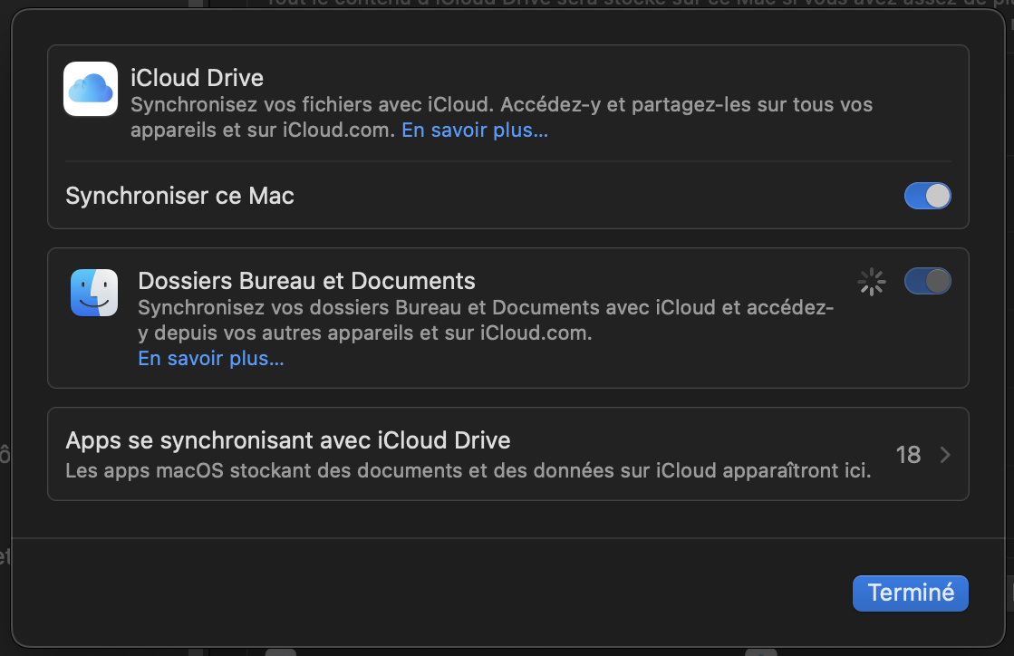 Apres plusieurs essais de régler le problème, je crois comprendre que mon dossier "Bureau" ( et "Documents") a disparu, peut être supprimé par erreur. Cependant; en créer un nouveau avec le même nom ne regle pas le problème, notamment en essayant de "synchroniser Bureau et Documents" au cloud, qui ne peut pas être coché, sûrement signe qu'ils sont introuvables/inexistants.