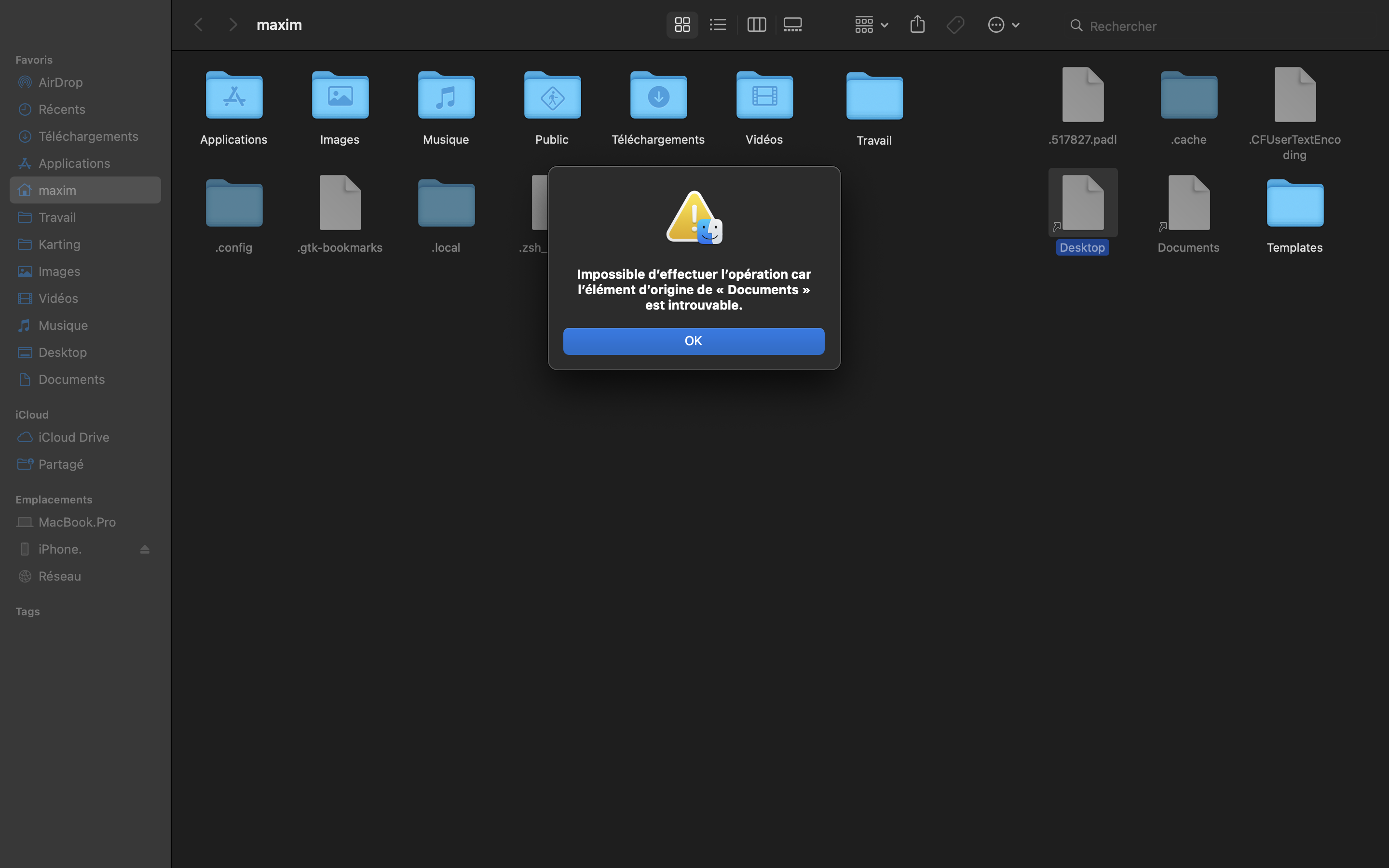 Apres avoir fait "Cmd+Maj+.", des fichiers "Desktop" et "Documents" apparaissaient, comme visible dans les screenshots de mon message précédent.