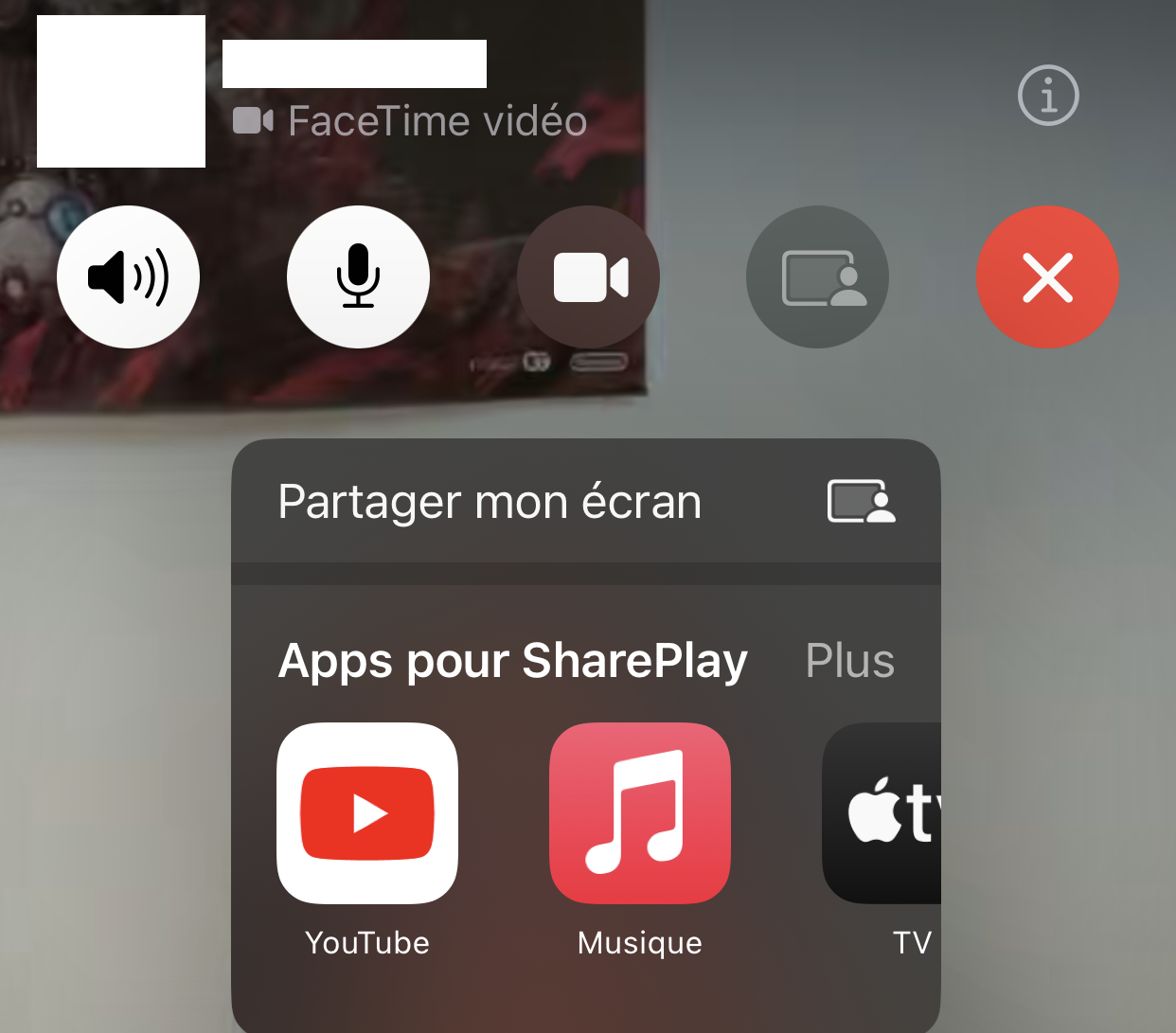 L’endroit ou il faut appuyer pour activer le partage d’écran n’est pas disponible dès que j’ai un appel facetime je vous envoie un screen.