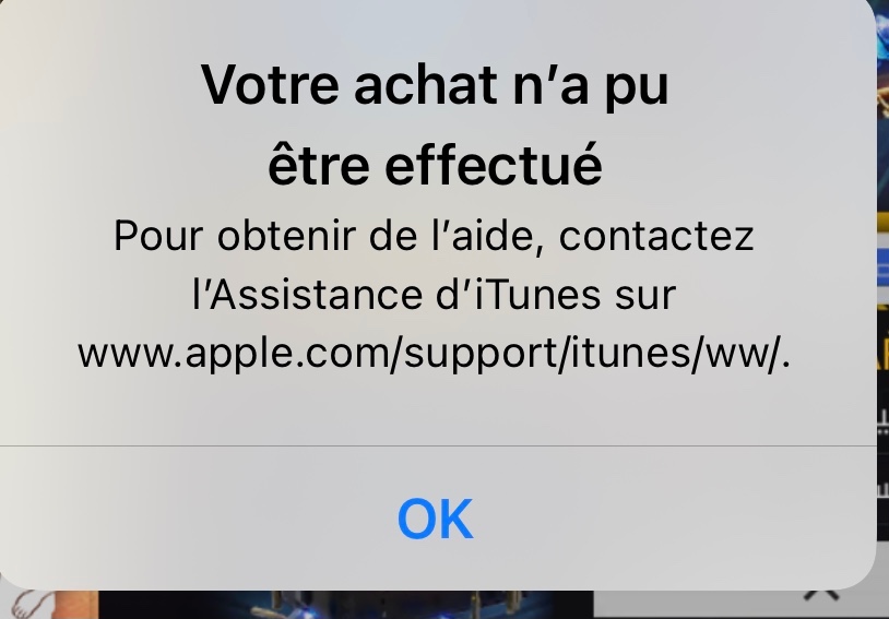 Achat Apple n'a pu être effectué