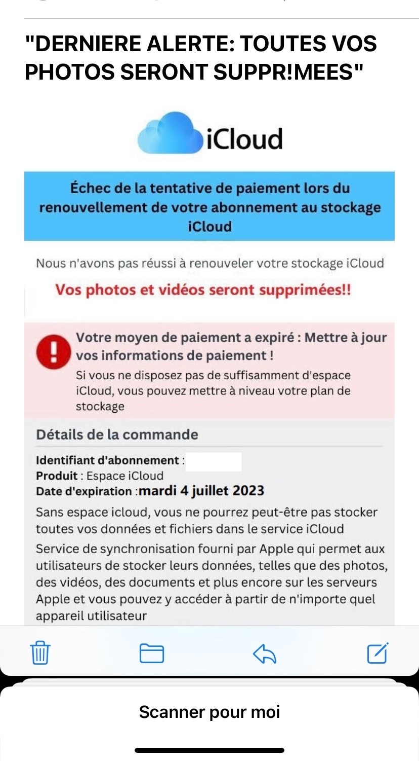 Je recois un email me disant que icloud va effacer mes photos et mes vidéos aujourd'hui est ce un message frauduleux.?