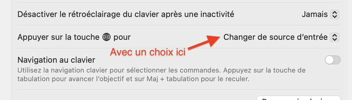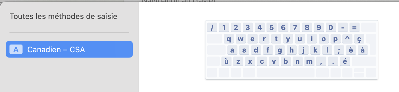 Tu rajoute un clavier dans Réglages système -> Clavier et dans les Entrée de texte -> Sources de saisie click sur le bouton "Modifier ..."