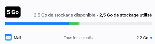 Dans iCloud, Mail affiche un stockage de 2,2 Go ce qui ne correspond pas à la réalité.