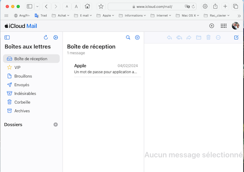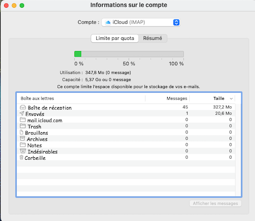 • Dans mail iCloud , j'ai actuellement. 10 Mo environ , soit 27 messages sans pièces jointes.