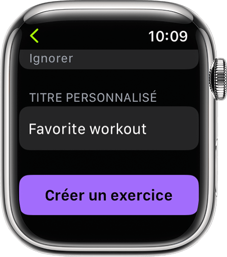 à côté de l’exercice que vous souhaitez faire. - Faites défiler vers le bas et touchez Créer un exercice, puis touchez Personnalisé.