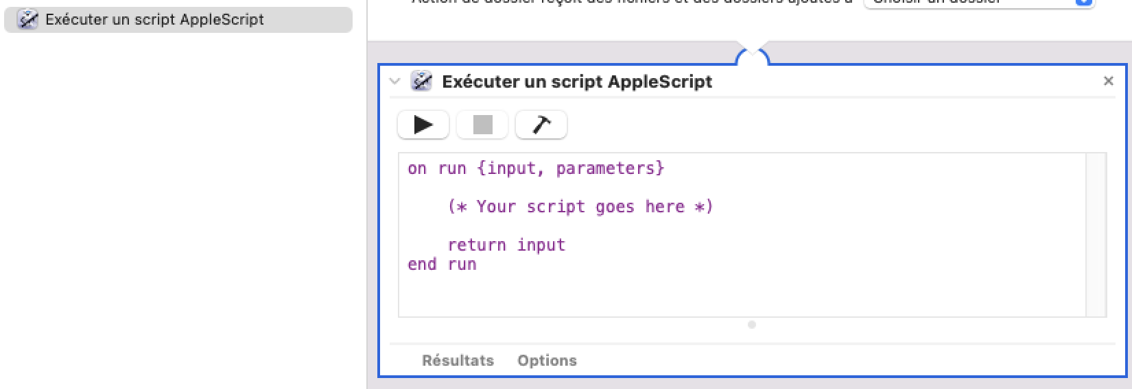 • Glissez l'action "Exécuter un script AppleScript" dans la région à droite.