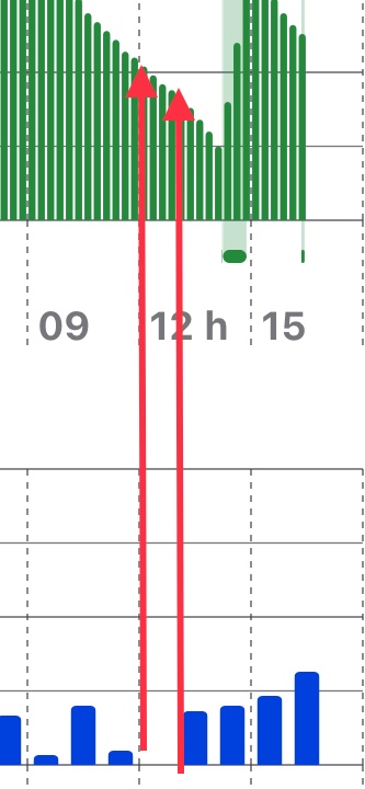 on voit sur l’image la consommation durant une période d’inactivité entre les 2 flèches rouges
