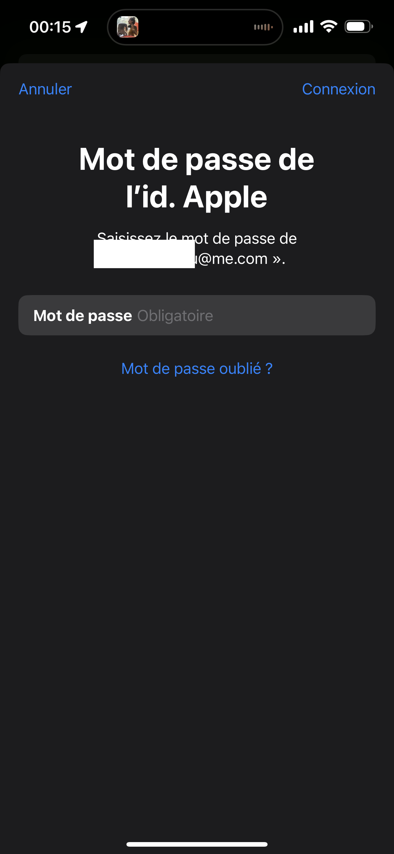 • Si tu avais juste modifié ton identifiant Apple en le renommant, qu'est-ce que ça donne lorsque tu rentres ton mot de passe actuel, qui correspond à ton identifiant actuel ?